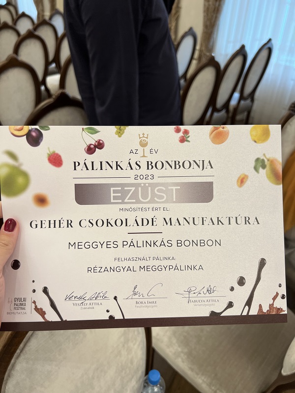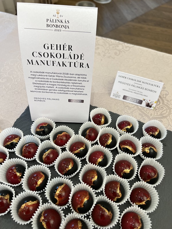 Örömmel jelentjük, hogy a Gehér Csokoládé Manufaktúra meggyes pálinkás bonbonja ezüst minősítéssel végzett a versenyen és egy különdíjat is elnyert.