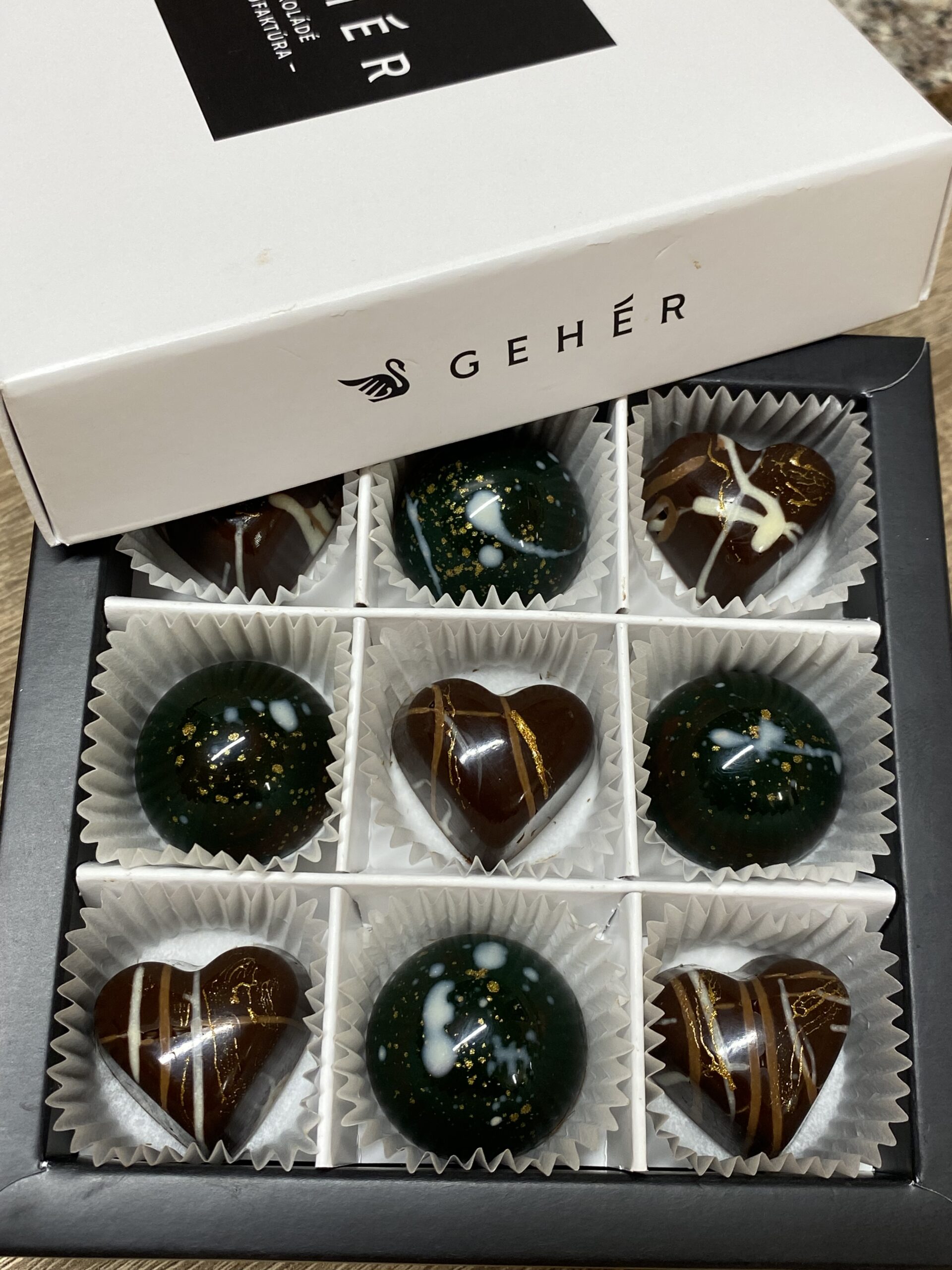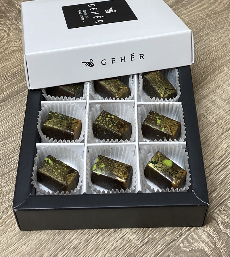 A Gehér Csokoládé Manufaktúra minden kézműves csokoládé terméke.
